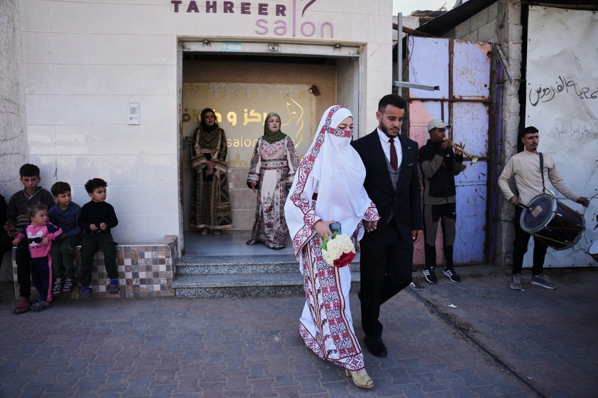 Među mladencima bili su 27-godišnji Eman Hasan Lava i Hikmet Lava, koji su u tradicionalnoj palestinskoj odeći prošli kroz ruševine Kan Junisa, piše "Tajms of Izrael".