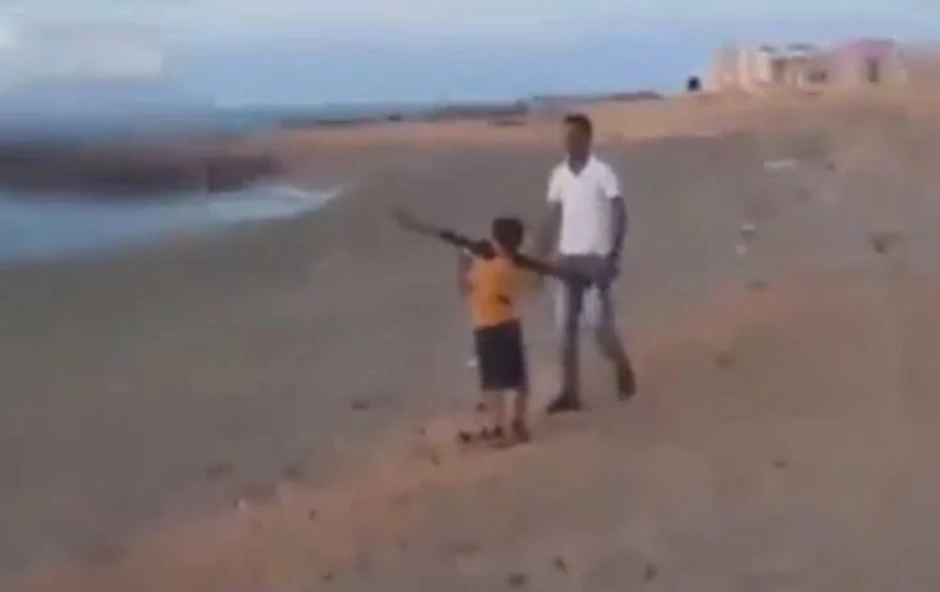 Veruje se da je snimak načinjen na nekoj od libijskih plaža, a oružje sa kojim dečak vežba je raketni minobacač, koji se ispaljuje s ramena i koristi rakete s eksplozivnim bojevim glavama.