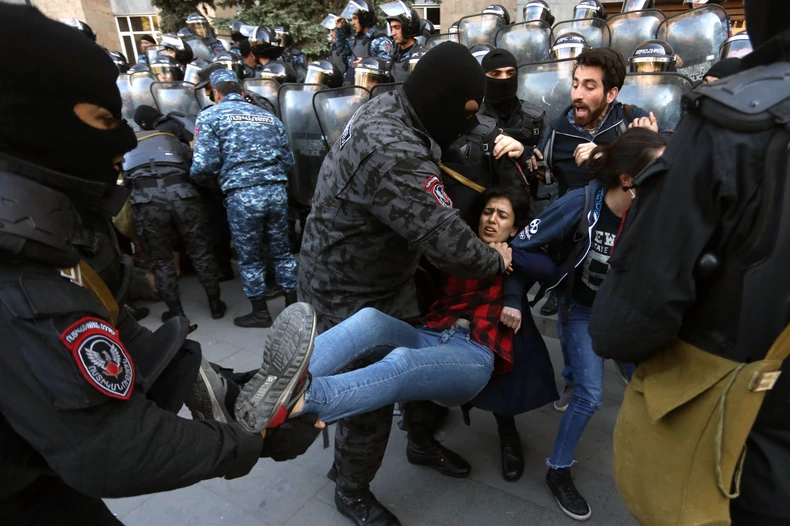 Najmanje 65 opozicionih aktivista uhapšeno je danas u Jerevanu tokom protesta organizovanog zbog odluke bivšeg jermenskog predsednika Serža Sargsjana da se kandiduje za premijera te zemlje.