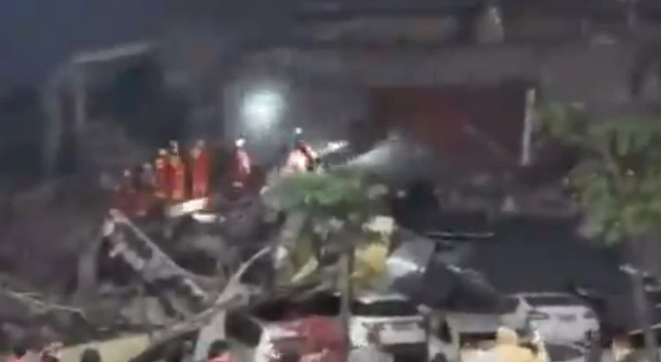 Na snimcima koji su objavili kineski medji vide se ruševine i službe hitne pomoći.