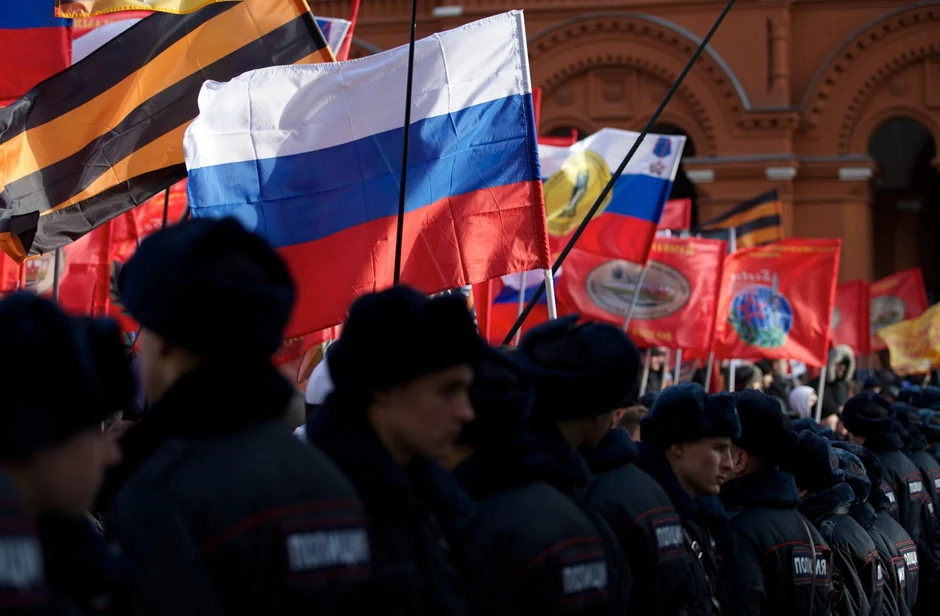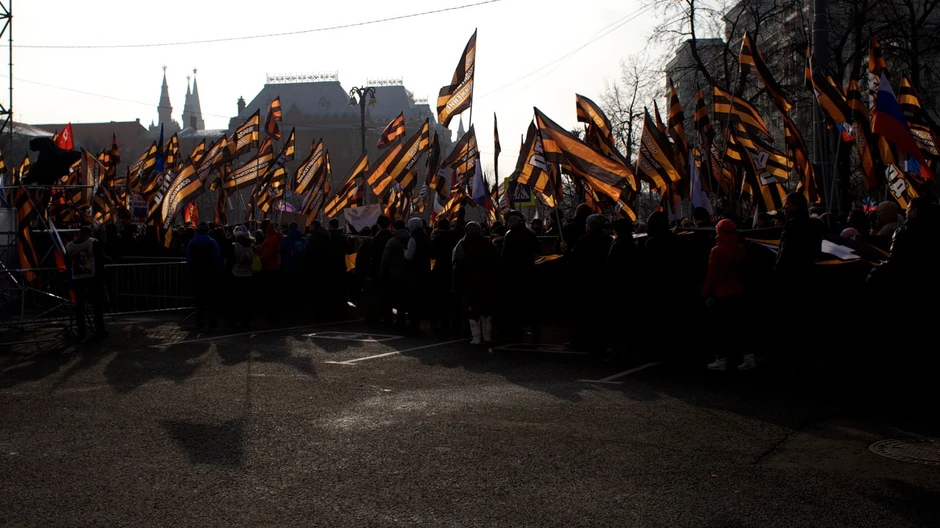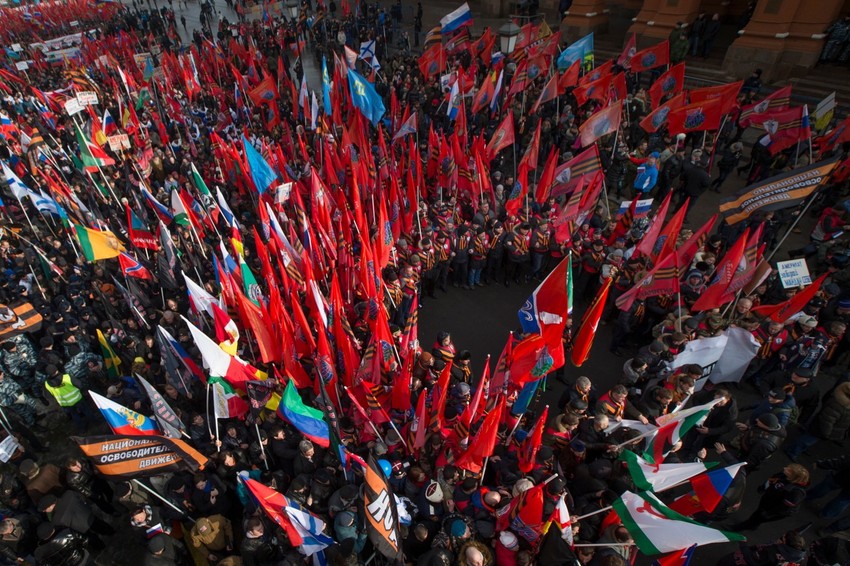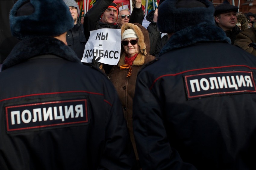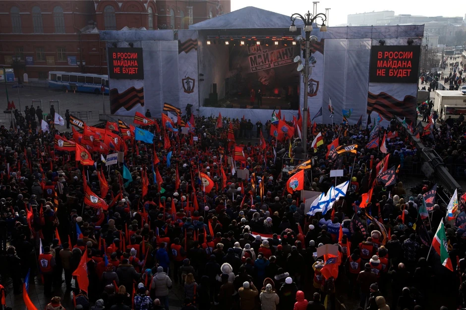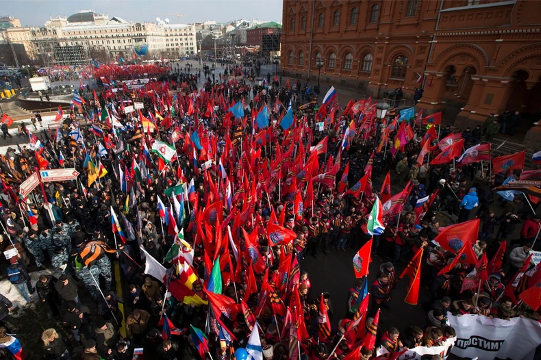 Oko 35.000 ljudi se okupilo danas u centru Moskve protestujući zbog, kako tvrde, "fašističkog puča" do kojeg je došlo pre godinu dana u susednoj Ukrajini.