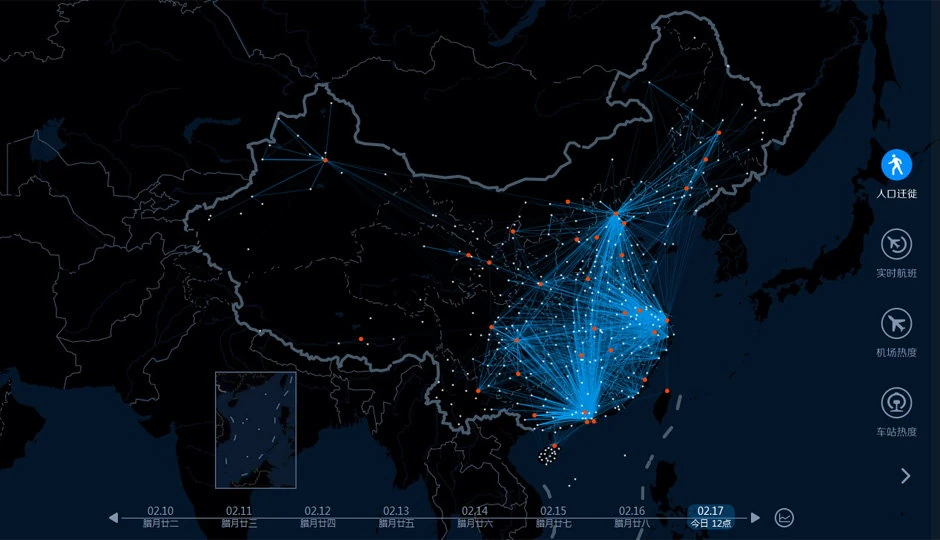 Najveća svetska migracija stanovnika se svake godine odvija u Kini neposredno pred kinesku Novu godinu. Zahvaljujući kineskom pretraživaču "Baidu", sada javnost širom sveta ima priliku da stekne vizuelni uvid u razmere ovog masovnog kretanja.