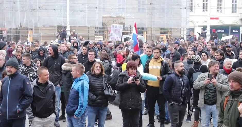Oko 1.000 demonstranata okupilo se danas u centru Zagrebu na protestu protiv mera Nacionalnog štaba civilne zaštite za borbu protiv korona virusa.