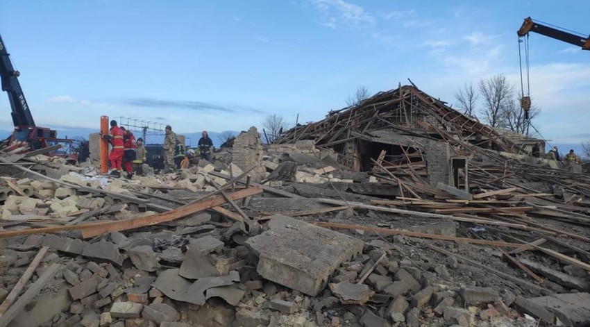 U istočnom ukrajinskom gradu Čugujevu, sin je zaplakao nad telom svog oca među ostacima raketnog udara u stambenoj četvrti.