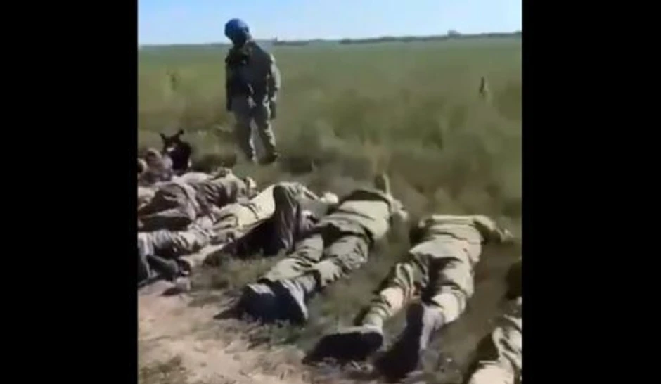 Na fotografijama se može videti desetine ruskih vojnika kako sede ili leže na tlu betonskog bunkera sa šlemovima i oružjem naslaganim uza zidove.