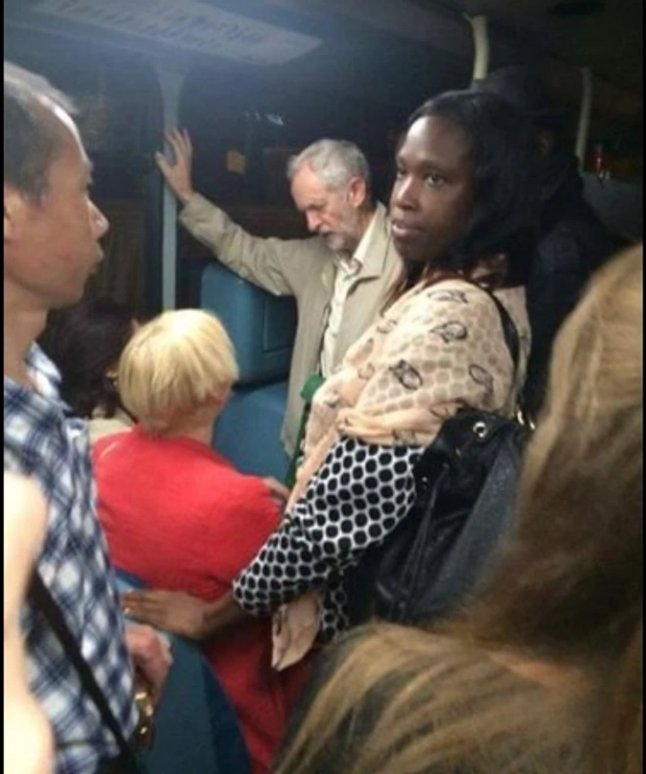 "Ovo je lider laburista Džeremi Korbin, ne u rols-rojsu ili nekim drugim fensi kolima, već u javnom prevozu nakon dugog radnog dana", napisao je Fejsbuk korisnik Amar Alam, koji je zabeležio ovu fotografiju.