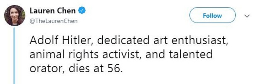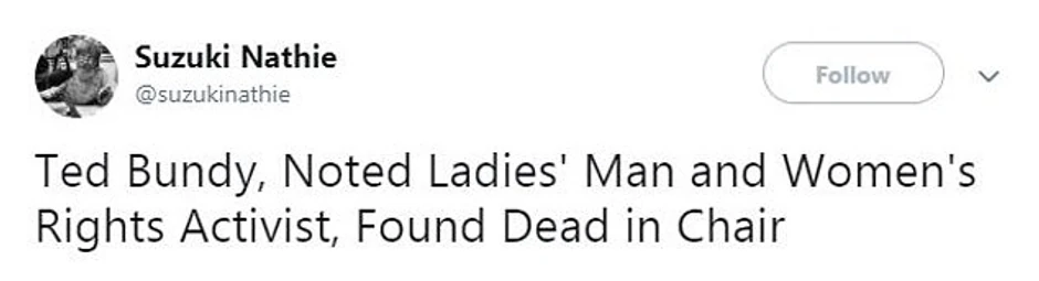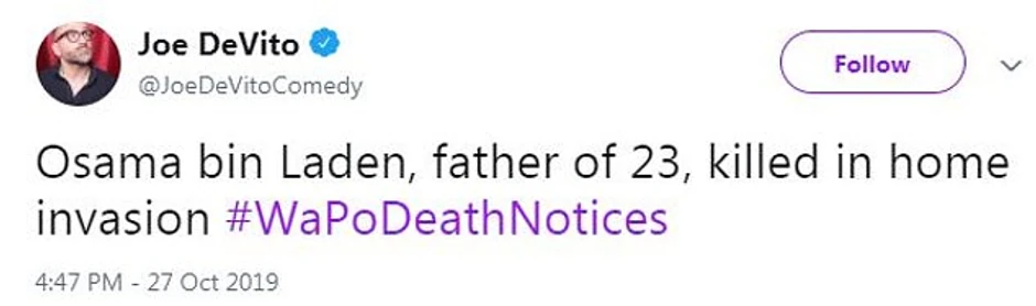 Bizaran opis podstakao je tviteraše da sami izmišljaju naslove u kojima objavljuju smrt drugih ozloglašenih ličnosti, poput Hitlera i Teda Bandija, praveći parodiju na račun oglasa.