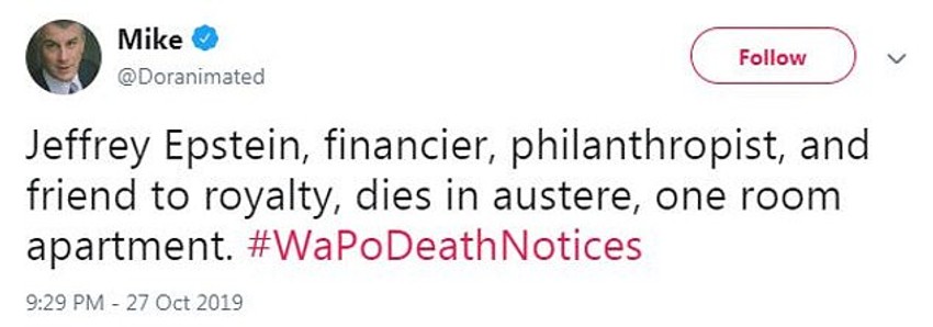 - Džefri Epstajn, finansijer, filantrop i prijatelj člana kraljevske porodice, umro u skromnom, jednosobnom stanu.