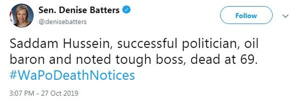 Korisnici Tvitera narugali su se "Vašington postu" nakon što je u nedelju objavio vest o smrti terorističkog vođe Abu Bakra al Bagdadija, u kojoj je vođa Islamske države ubijen u američkom napadu, opisan kao "strogi verski učitelj".