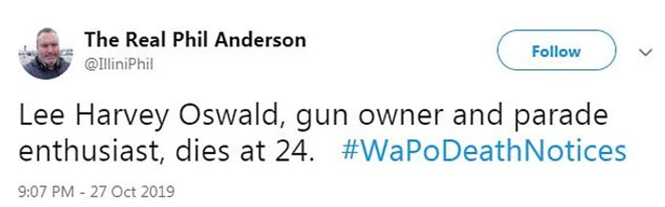 - Li Harvi Osvald, vlasnik oružja i zaljubljenik u parade, umro u 24. godini.