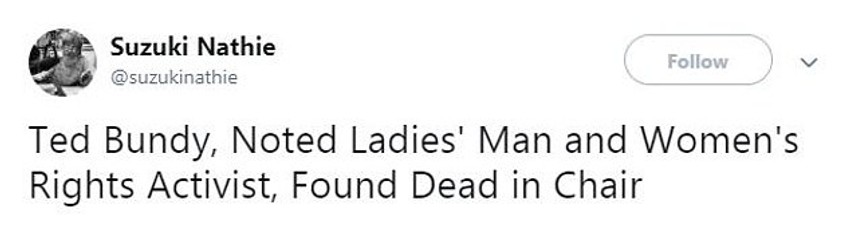 - Ted Bandi, istaknuti ženskaroš i aktivista za ženska prava, nađen mrtav u stolici.
