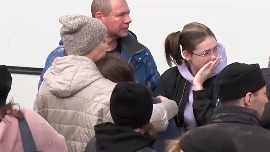 Na snimcima iz Jakutska vidi se veliki broj ljudi koji ulazi u autobus nakon što su se oprostili od svojih bližnjih uz suze.