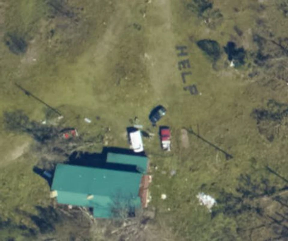 Zbog toga je u subotu pretraživala interaktivnu mapu Nacionalne agencije za okean i atmosferu, kad je odjednom na travnjaku blizu te kuće ugledala natpis "help", što znači "upomoć".
