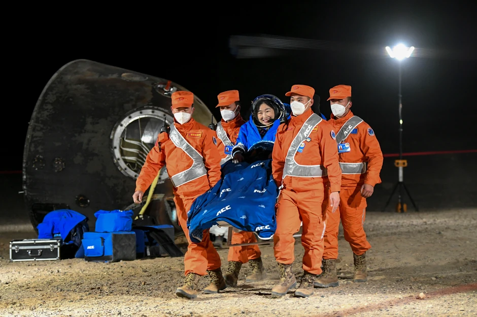 Tri kineska astronauta sletela su danas u pustinju Gobi na severu Kine nakon šest meseci rada na završetku izgradnje stanice Tjangong, izvestila je državna televizija.