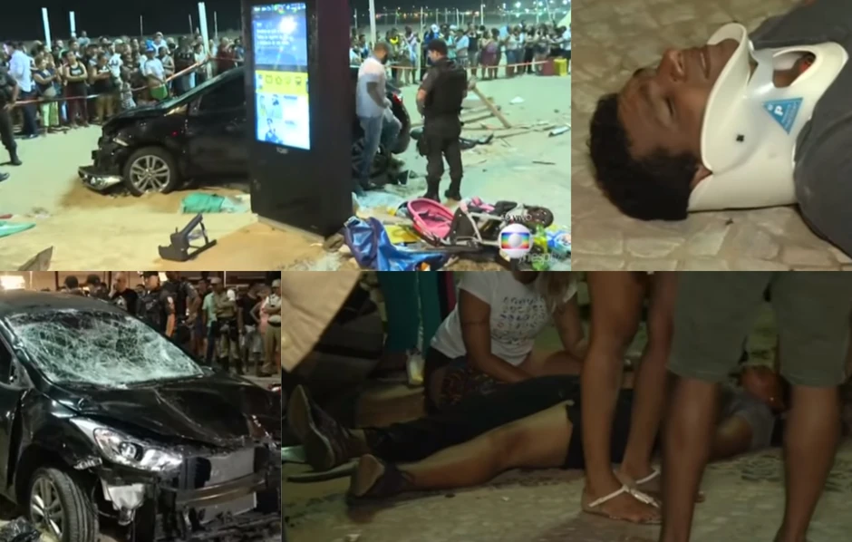 Televizija je prikazala kako povređeni leže na pesku i trotoaru dok im se ukazuje pomoć. Oštećeni automobil zaustavio se na plaži.