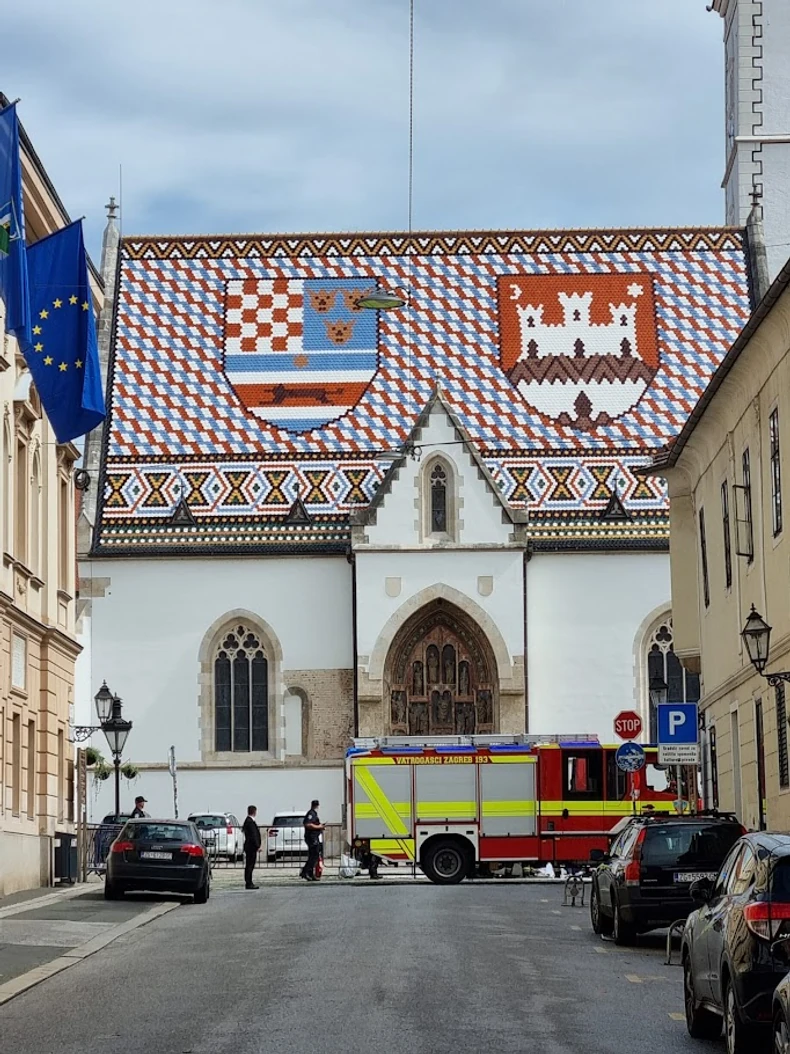 Oko 9.40 ispred ograde na južnoj strani Markovog trga u Zagrebu nepoznata osoba se polila benzinom i zapalila.