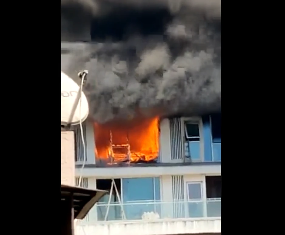 Televizijski snimci prikazuju kako jak crn dim izlazi iz stana na 19. spratu zgrade, dok 16 vatrogasnih vozila pokušava da ugase požar.