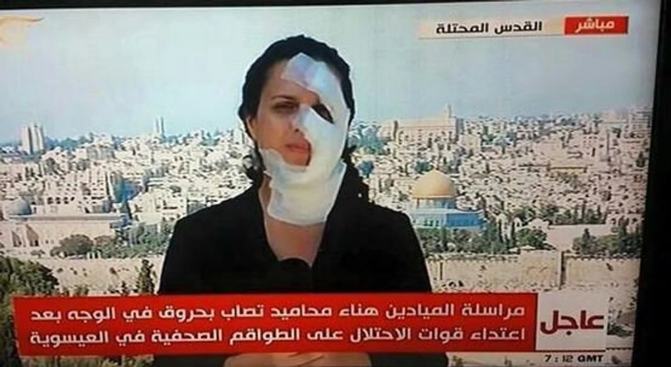 Hana Mahamid, arapsko-izraelska reporterka llibanske televizije Al-Majadi, pojavila se na malim ekranima sa zavojem preko polovine lica. Nju je pogodila granata koju su navodno ispalili izraelski policajci.
