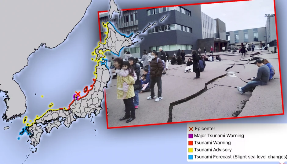 Od stanovnika priobalnog područja Noto u prefekturi Išikava zatraženo je da se "odmah evakuišu na više tlo", saopštila je nacionalna televizija NHК. Javna televizija je velikim slovima objavila "EVAKUIŠITE SE", pozivajući stanovnike da pobegnu na viši teren uprkos zimskom vremenu.