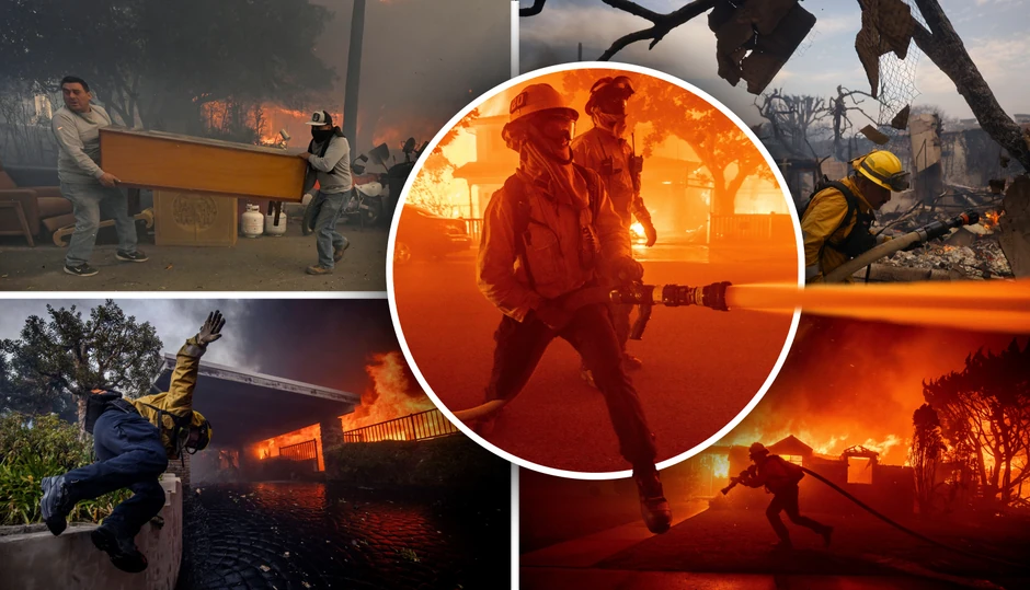 Divlji šumski požari koji su okružili Los Anđeles usmrtili su najmanje pet ljudi, uništivši stotine domova i iscrpljujući resurse za gašenje požara i zalihe vode do krajnjih granica, dok je više od 100.000 ljudi dobilo naredbu da se evakuišu. Vatra je zahvatila i čuveni Holivud Hils.