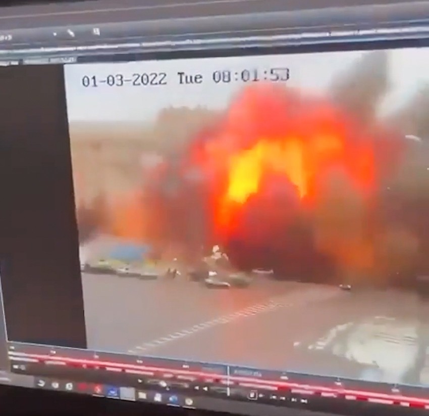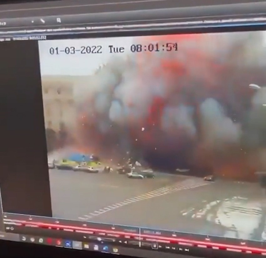 Viralni video na ukrajinskim društvenim mrežama pokazuje projektil kako se zabija u zgradu regionalne vlade, što je uzrokovalo veliku eksploziju koja je razbila prozore i obližnja vozila.