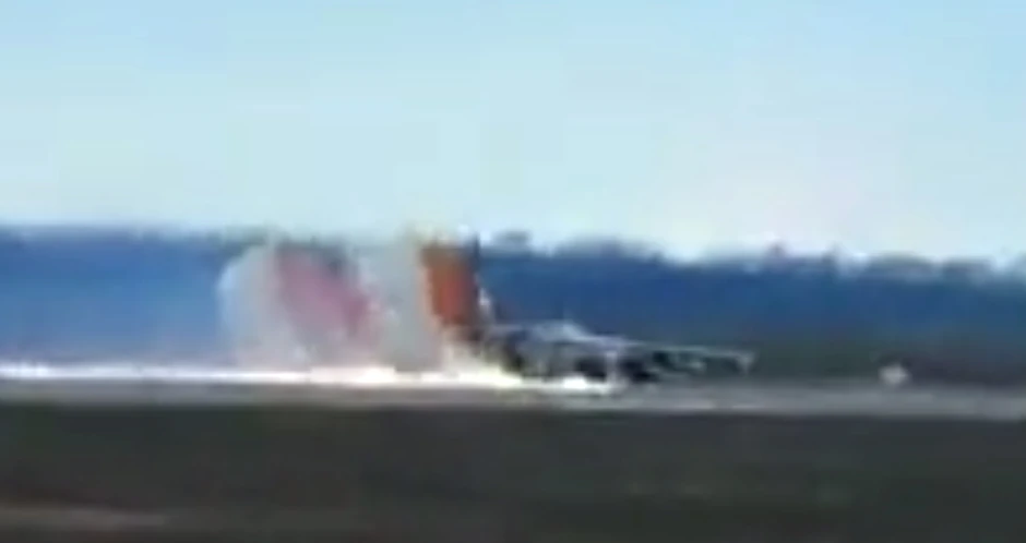 Na društvenim mrežama pojavio se snimak aviona kako sleće na pistu, dok iza njega sevaju vatra i varnice, izazvane trenjem metalne površine aviona i betona.