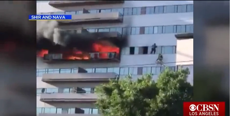 Stan na 6. spratu jedne zgrade u Los Anđelesu juče se zapalio, pri čemu su ljudi iskakali iz svojih stanova kako bi se spasli.