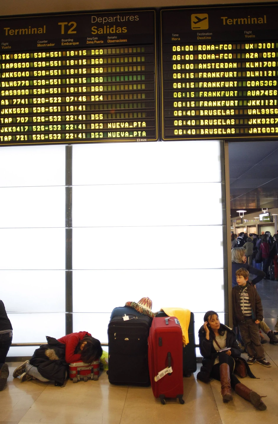 Oko 250.000 ogorčenih putnika blokirano je od sinoć na aerodromima zbog blokade vazdušnog saobraćaja izazvane štrajkom kontrolora letova. Nekoliko hiljada putnika provelo je noć u aerodromima, a najviše u Madridu, gde su jedino leteli avioni za prekookeanske destinacije.