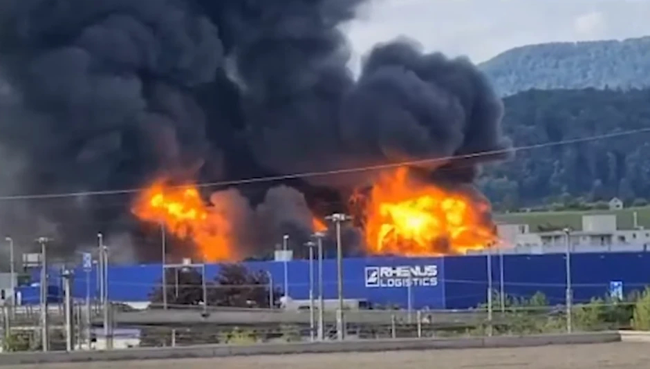 Vatrogasna služba je izašla na lice mesta, a veliki oblak dima video se na udaljenosti od više kilometara, javlja televizija SRF.