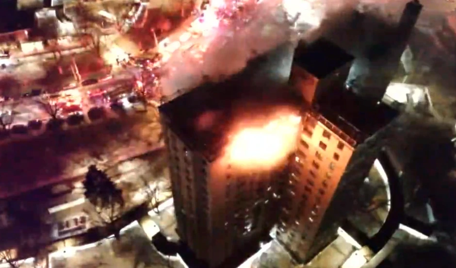 Vatrogasci su na terenu i bore se sa vatrenom stihijom koja je zahvatila nekoliko poslednjih spratova zgrade. Prema rečima zvaničnika, požar je izbio nakon prijave o eksploziji gasa, a gust crni dim kulja sa vrha višespratnice i vidljiv je iz velikog dela grada.