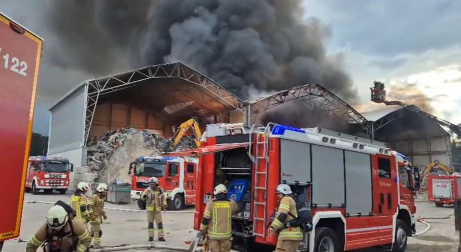 Veliki požar izbio je u jednoj skladišnoj hali u mestu Pill, okrug Švac. Građanima je na mobilne telefone stigla poruka upozorenja da ne izlaze napolje.