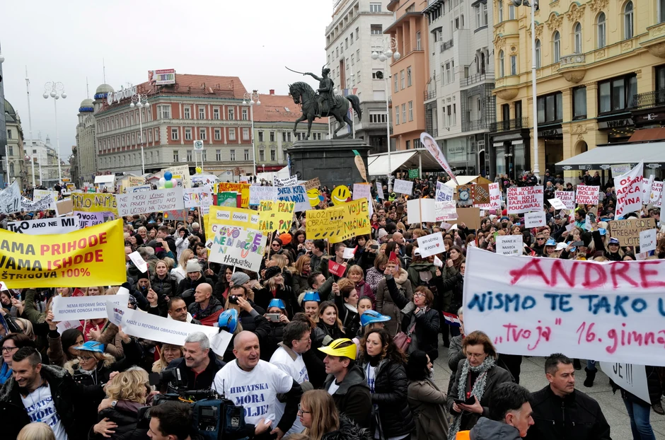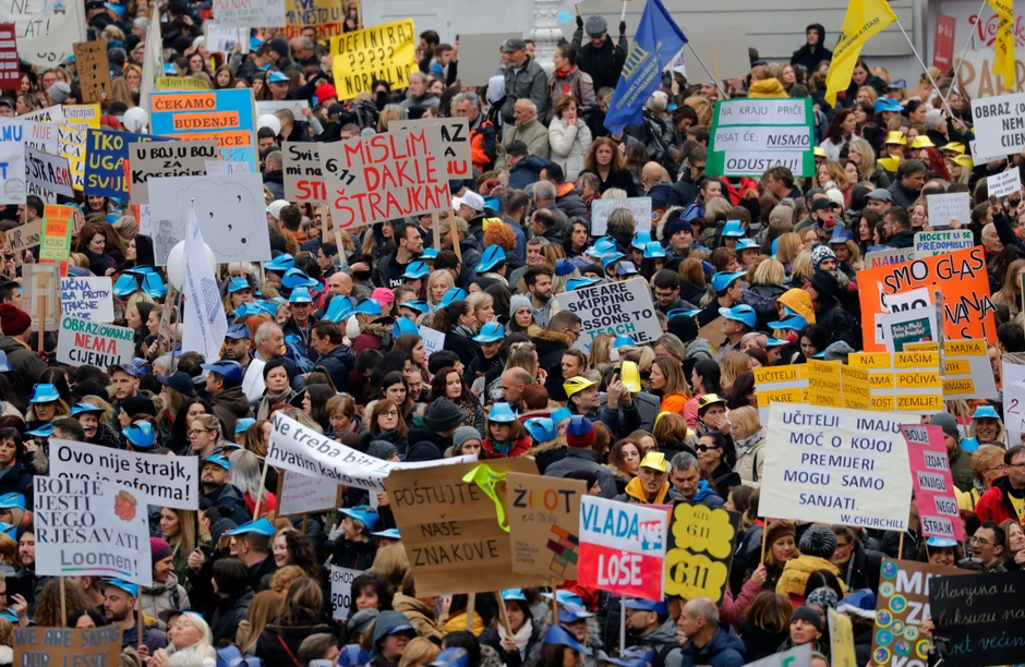 Danas se u Zagrebu održava veliki štrajk prosvetnih radnika koji su u prestonicu Hrvatske došli iz svih delova zemlje. Prosvetari štrajkuju već 31 dan, zahtevajući povećanje plata kroz povećanje koeficijenata složenosti poslova za 6,11 odsto.