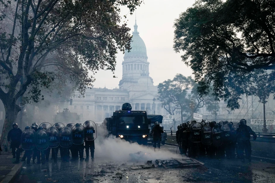 Hiljade ljudi okupilo se na protestu ispred zgrade Kongresa u centru Buenos Ajresa. Demonstracije su počele mirno, ali su potom izbili sukobi sa policijom. Učesnici protesta zapalili su automobil i gađali policajce kamenjem.