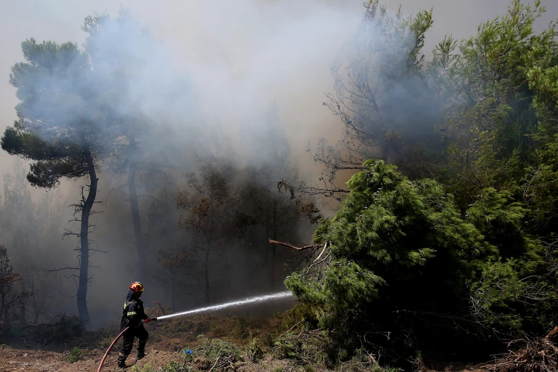 Požar, koji je izbio oko deset časova jutros, proširio se usled jakog vetra, pa su lokalne vlasti naredile evakuaciju stanovnika iz naselja Tolopotami i Sklavija.