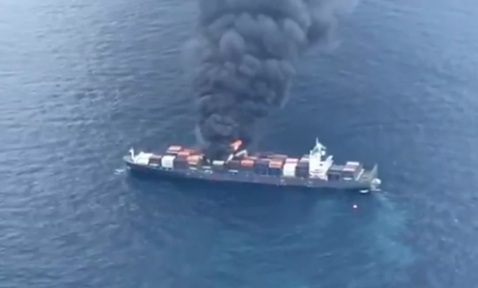 Fotografije i snimci koje je indijska obalska straža podelila na platformi Iks pokazuju gust oblak crnog dima koji se diže sa broda i nekoliko otvorenih kontejnera.