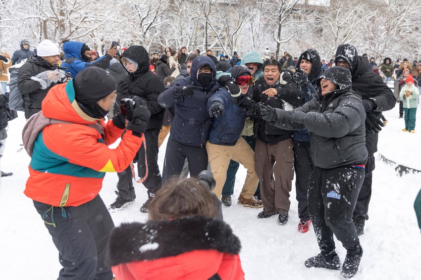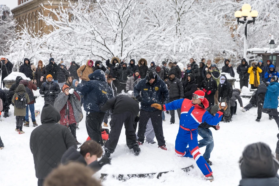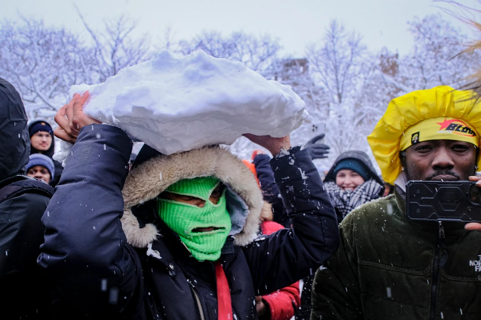 Kako piše "Njujork tajms", tokom proteklih nekoliko decenija, u nekim velikim gradovima postalo je uobičajeno da se velike grupe ljudi okupljaju u parkovima posle snežnih oluja. Kasnije budu objavljeni snimci na kojima se vidi kako stanovnici i policajci radosno bacaju grudve jedni na druge. Ali neke od ovih interakcija su postale žestoke.