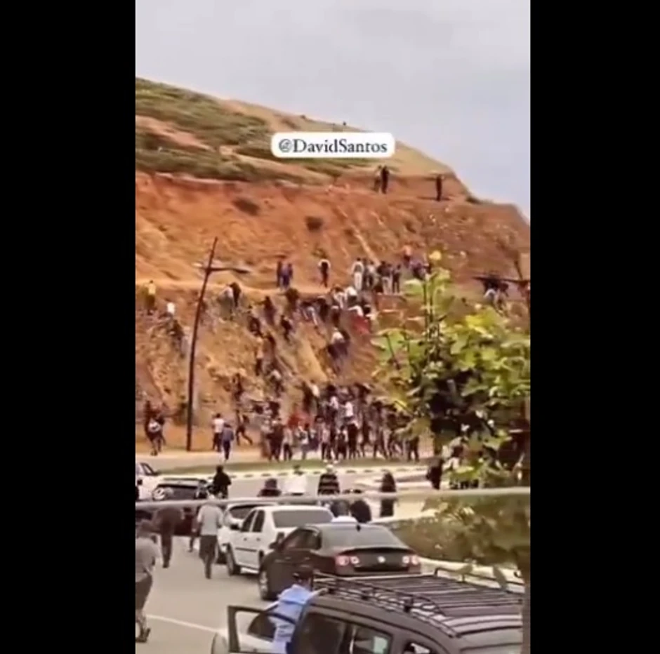 Video snimak objavljen na internetu prikazuje migrante kako trče preko vrha brda kroz pogranični grad Fnidek, marokanski grad najbliži španskoj enklavi, prenosi "Jutarnji list".
