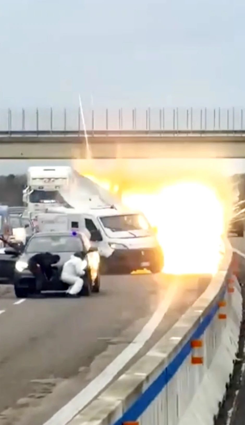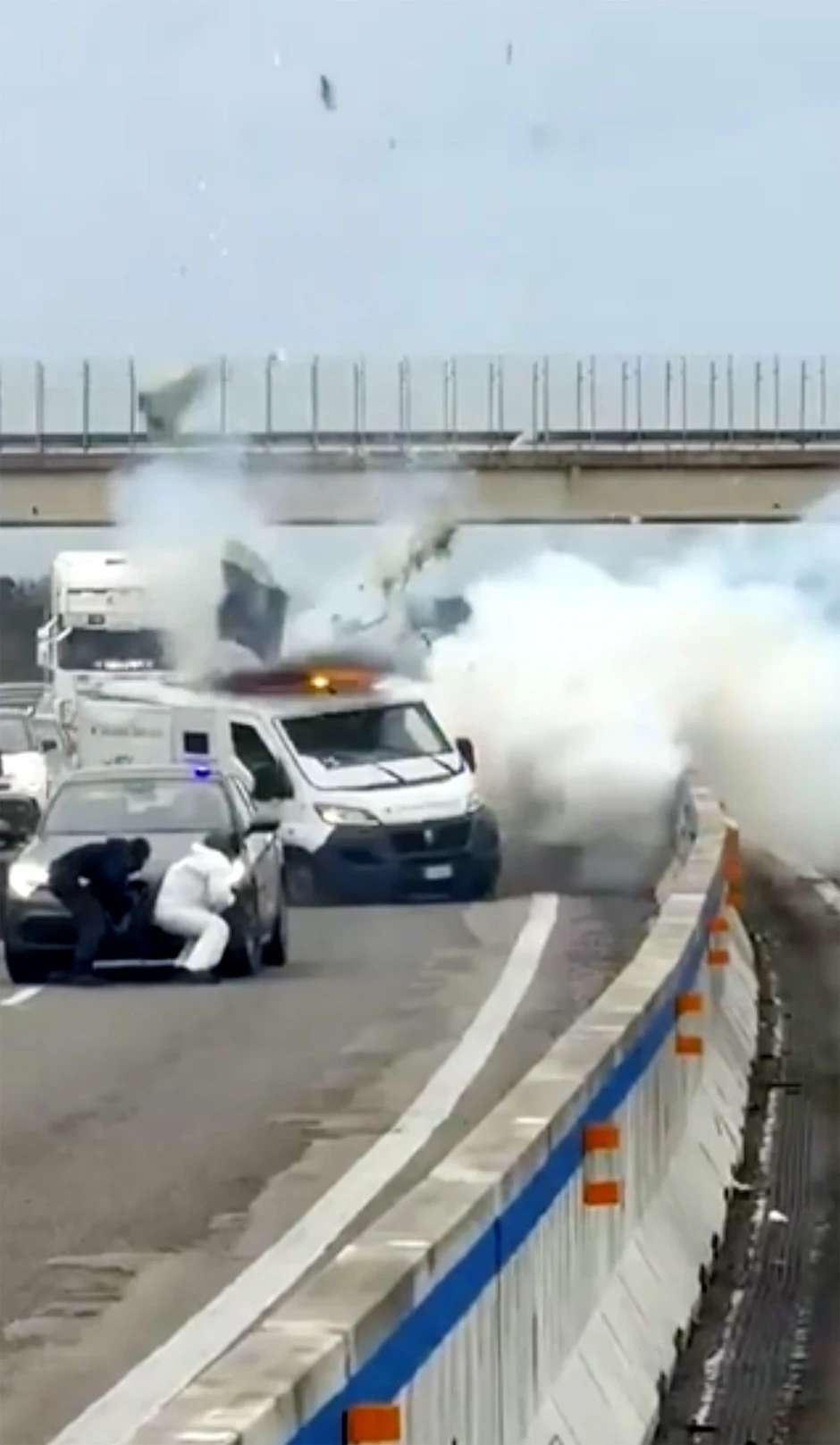 Razmena vatre između napadača i karabinjera šokirala je prisutne vozače na licu mesta