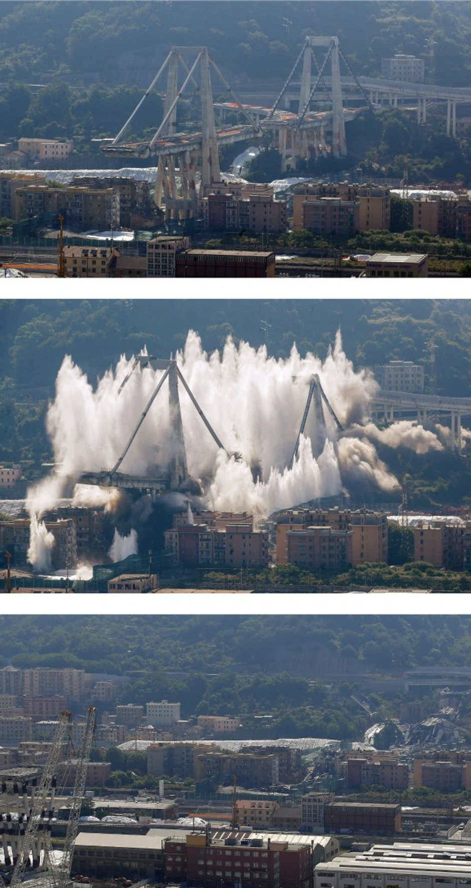Italijanske vlasti su planiranom eksplozijom srušile ostatke "crnog mosta" u Đenovi, na kojem je prošle godine stradalo 43 osobe nakon što se konstrukcija iznenada urušila.