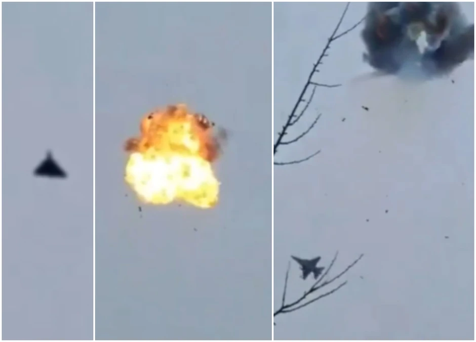 Eksplozija u vazduhu, potom komadići drona lete kroz vazduh i padaju u šumovito područje. Ovo se vidi na snimku koji je objavila ukrajinska vojska na društvenoj mreži Fejsbuk, za šta tvrdi da prikazuje snimak njihovog lovca F-16 kako uništava ruski jurišni dron.