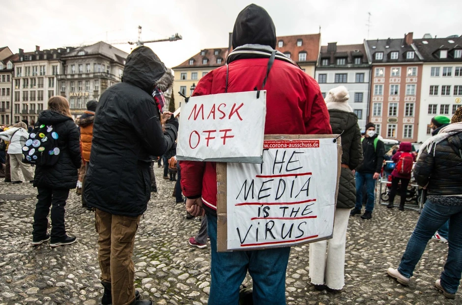 „STOPP Impffaschismus“ (zaustavite vakcinalni fašizam) pisalo je na jednom natpisu u Beču. „Kontrolliert die Grenze, nicht euer volk“, (kontrolišite granicu, a ne svoj narod) pisalo je na drugom, a to su samo neki od slogana koji mešaju skepticizam prema vakcinama sa desničarskom ideologijom.