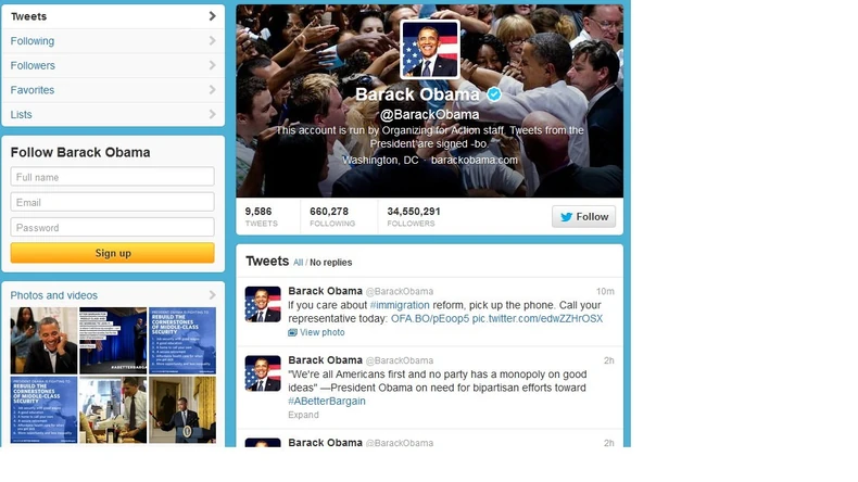 Četvrtina političara prati profil Baraka Obame i Bele kuće, koji pak prate samo ruskog premijera Dmitrija Medvedeva, britansku vladu, norveškog premijera Jensa Stoltenberga i čileanskog predsednika Sebastijana Pinjeru.
