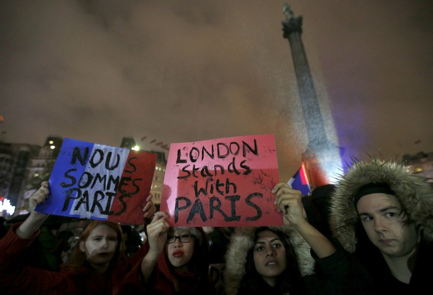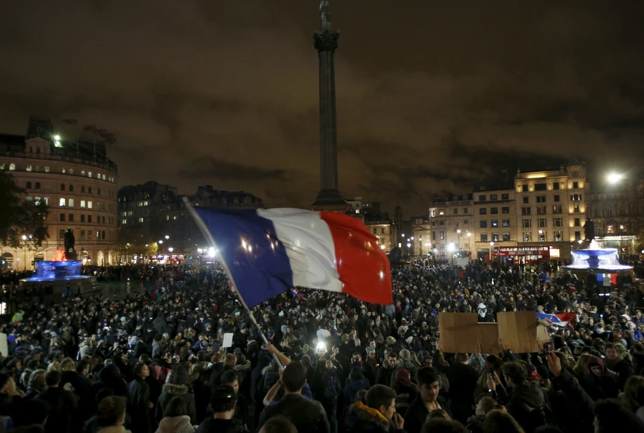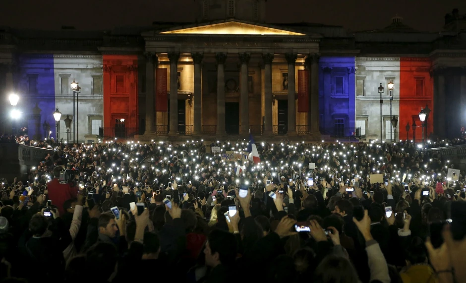 Na hiljade ljudi okupilo se na Trafalgar skveru u Lonodnu u subotu uveče, sa namerom da odaju poštu žrtvama napada u Parizu.
