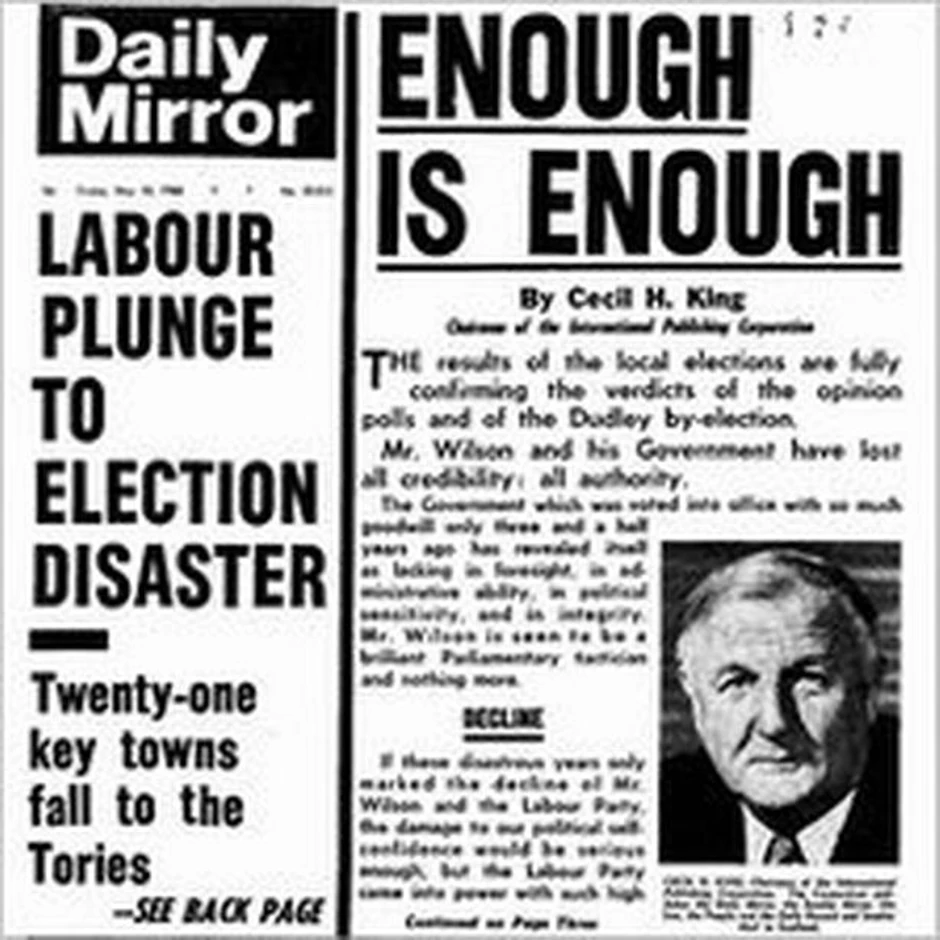 Godine 1968. Sesil King, vlasnik lista “Dejli miror”, pozivao je na svrgavanje demokratski izabranog premijera.