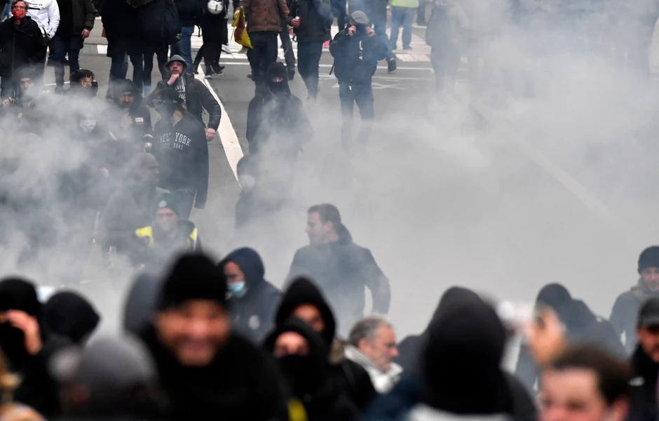 Belgijska policija je danas upotrebila vodene topove i suzavac da bi rasterala grupu demonstranata u Briselu, nakon što je većina mirno marširala u znak protesta zbog pooštrenih ograničenja protiv kovid-19 koje je uvela belgijska vlada.