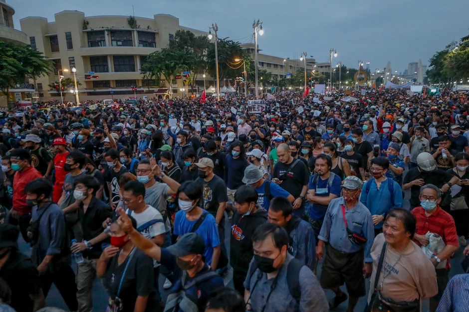 Policija je upotrebila vodene topove pokušavajući da ih zaustavi, ali neki su uspeli da se probiju do područja poznatog kao Sanam Luang, pored Velike palate.