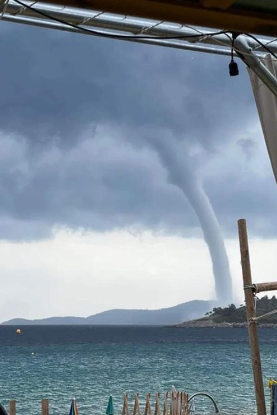 Vodena pijavica ili vodeni tornado snimljen je u Grčkoj za vreme oluje.