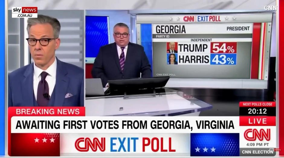 Kada je politički direktor ove medijske kuće Dejvid Čalijan rekao Taperu da izlazne ankete pokazuju da nesvrstani birači u Džordžiji daju prednost Trampu sa 54 odsto u odnosu na Kamlinih 43, voditelj je bio vidno šokiran.
