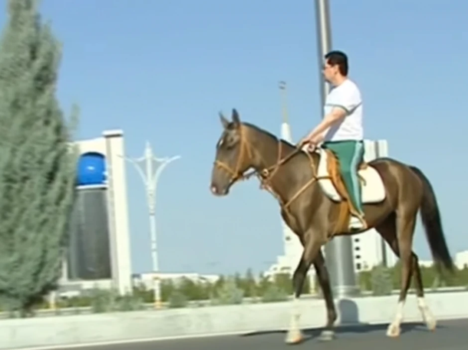 Predsednik Turkmenistana Gurbangulu Berdimukhamedov, nekadašnji zubar koji sada služi treći mandat svojoj zemlji, odlučio je da na konju obiđe izgradnju novih zgrada u Ašgabatu.