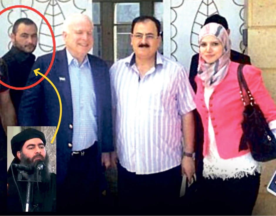 Na jednoj od fotografija snimljenih tom prilikom iza njega se vidi nepoznati muškarac, za koga su Mekejnovi politički protivnici tvrdili da je niko drugi do vođa Islamske države Abu Bakr al Bagdadi.